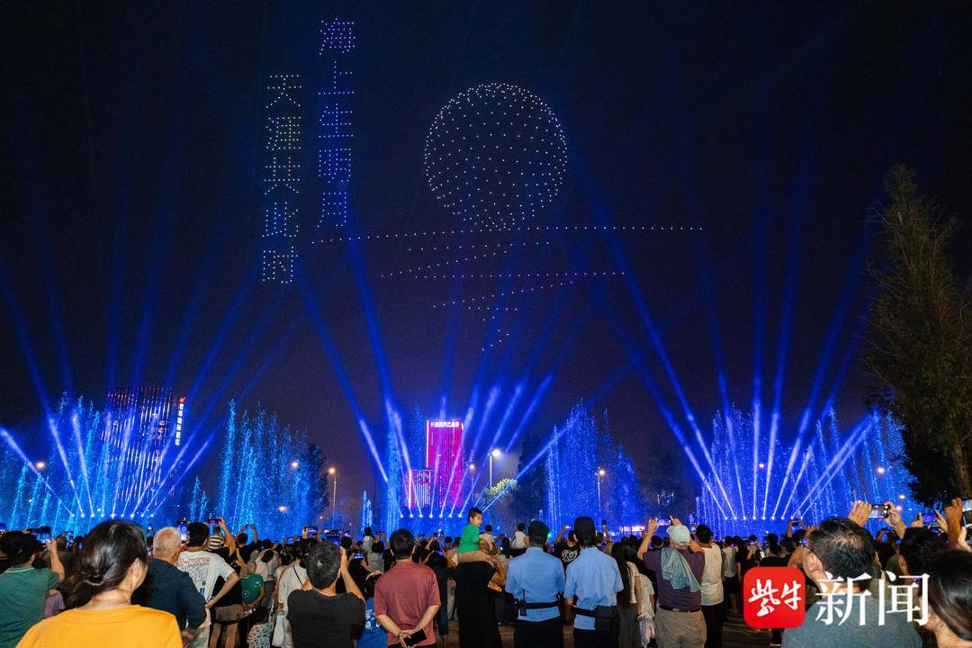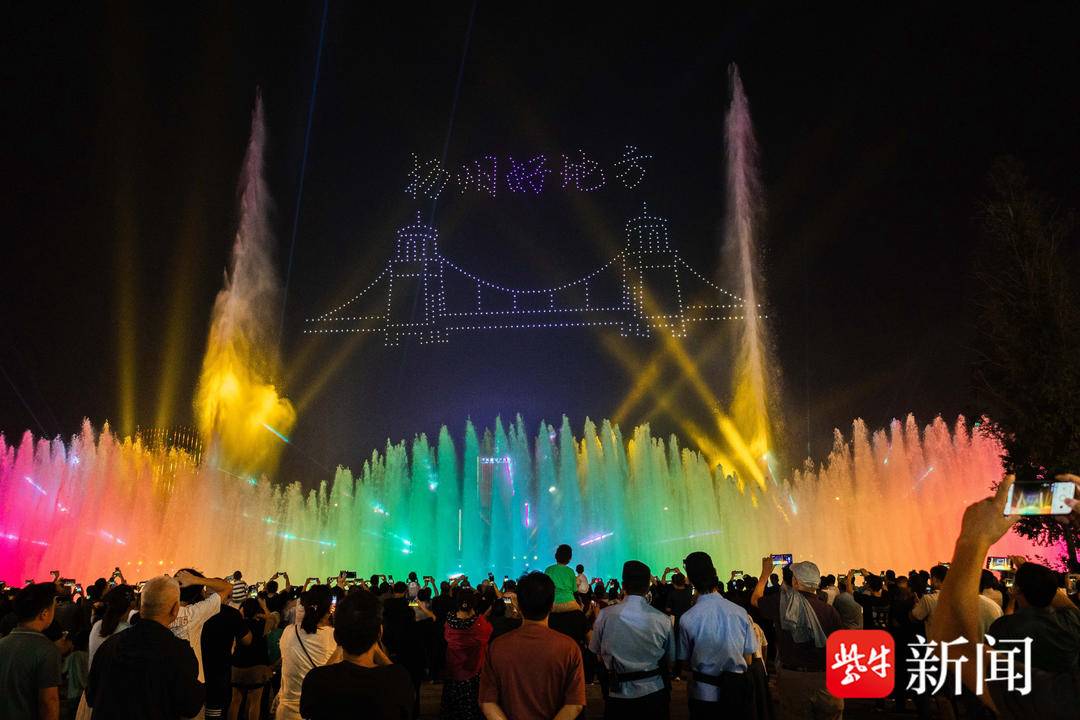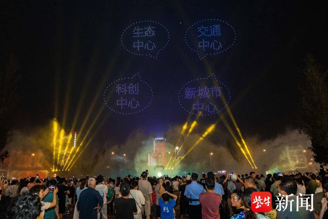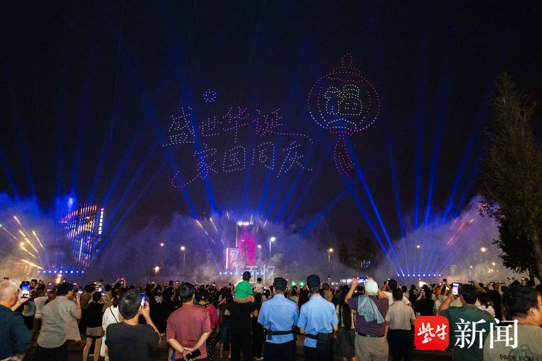 夜幕降临,扬州东站广场,700架无人机倏然齐飞,如流萤,似星河,在夜空中井然有序地排列、变换。无人机列队化身灵动画笔:先是勾勒出“我爱你中国心爱的母亲”的深情告白,点燃现场观众热情;随后变幻出“盛世华诞家国同庆”字样,营造出浓厚的节日氛围;紧接着,“扬州好地方”的宣传语熠熠生辉,展示城市的自信与魅力;而国产战机“歼15”与“华东航空谷”的造型相继亮相,则彰显了扬州在高端制造、航空产业与低空经济领域瞄准前沿、奋勇争先的决心。