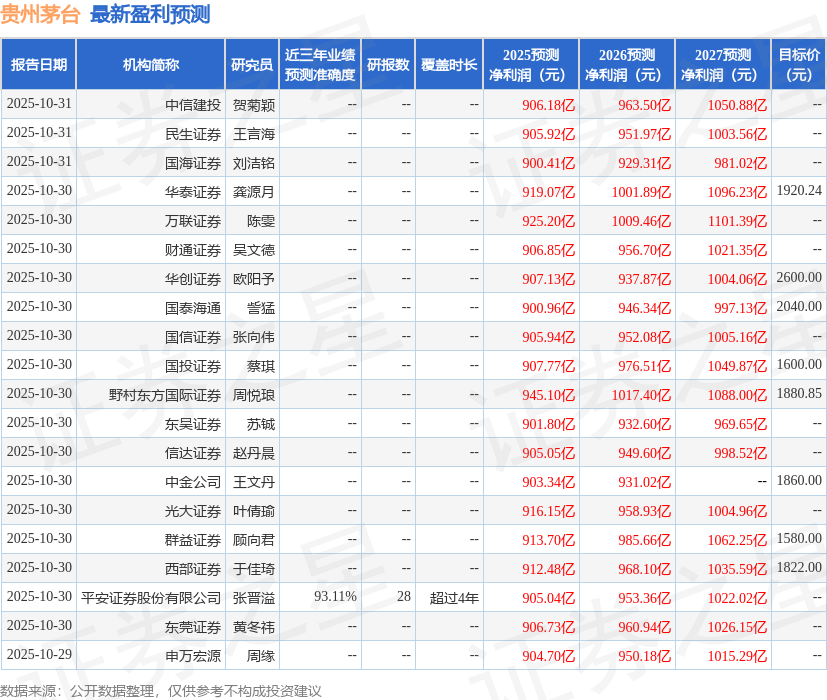 华安证券(600909)股份有限公司邓欣,郑少轩近期对贵州茅台(600519)进行研究并发布了研究报告《贵州茅台25Q3点评:顺应市场,行稳致远》,给予贵州茅台买入评级。